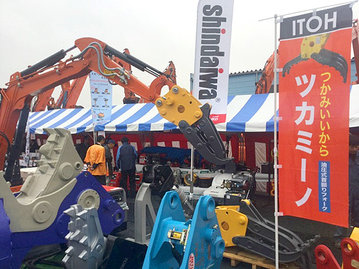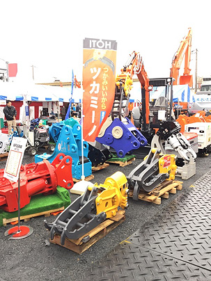 「ツカミーノチルトフォークITFF40 (旧JIS 0.2㎥クラス)」を取付け展示致しました。