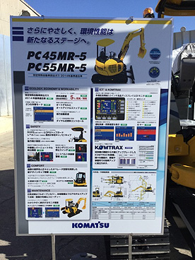 今展示会場にて弊社では、最新モデル「PC45MR-5型ミニショベル」に